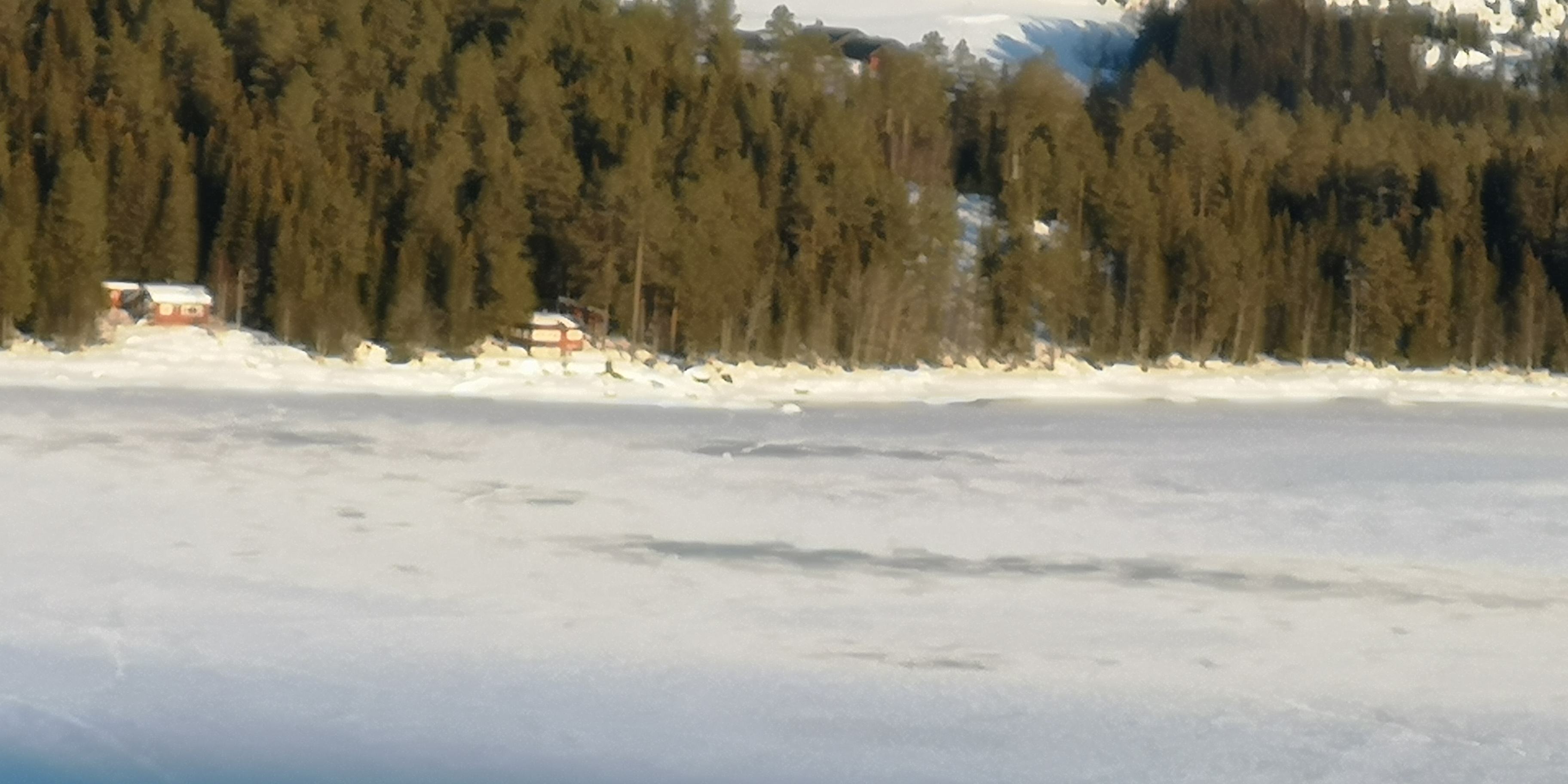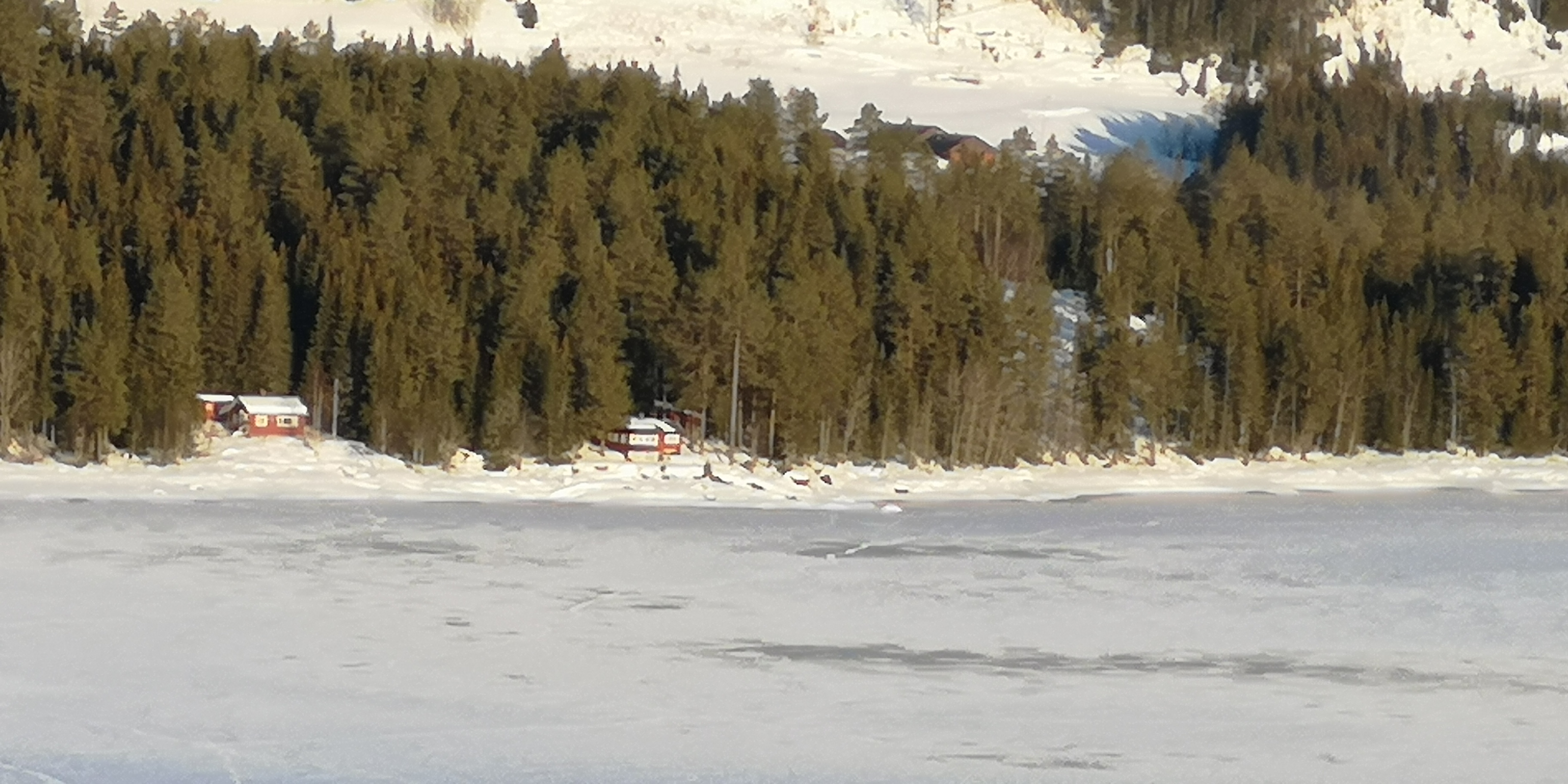 og da kan du sette + merket på f.eks. hytta og klikk igjen. Du får da en 10x forstørrelse,det er fordi dette bildet har