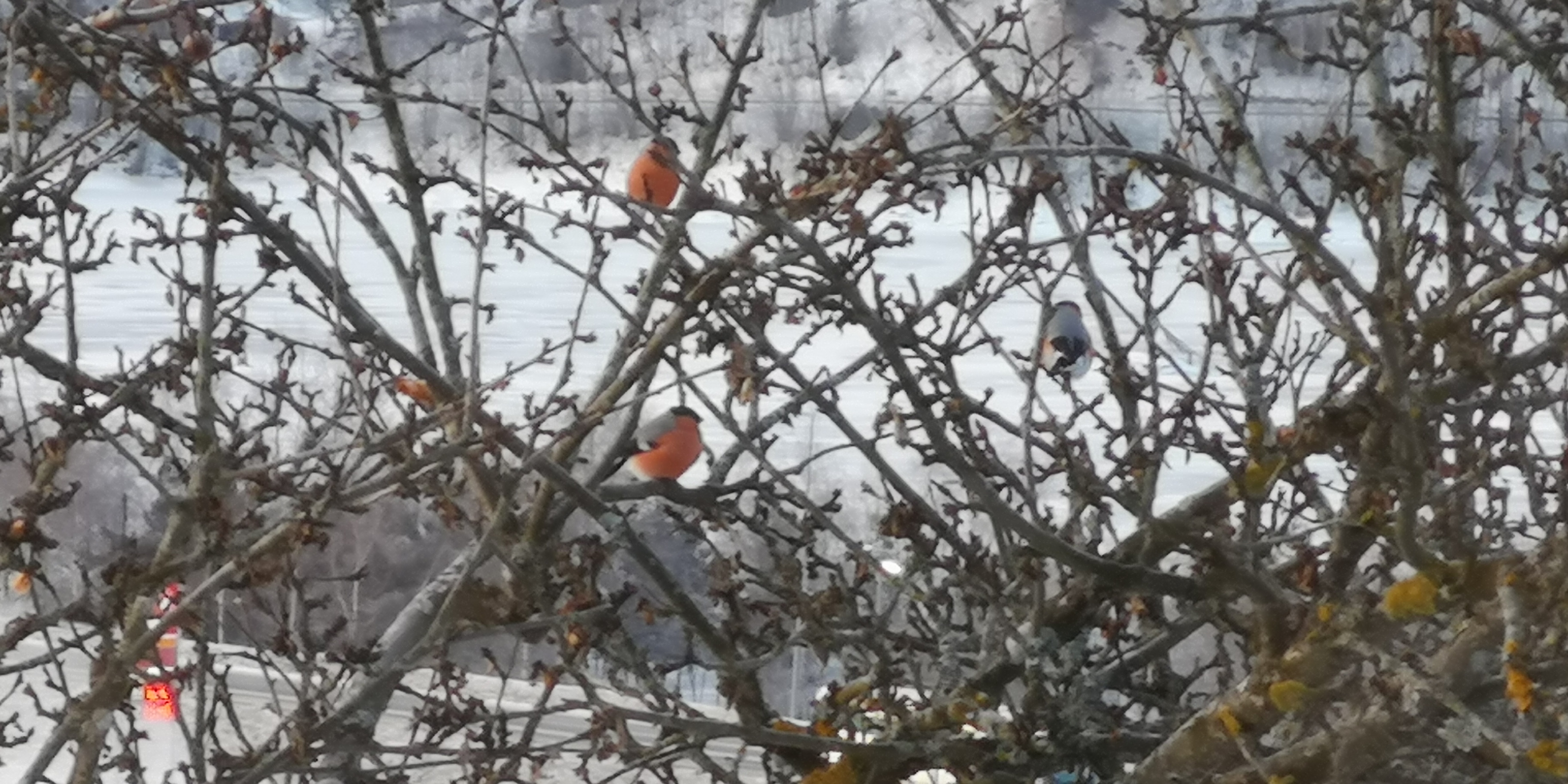 Dompapper i hagen hjemme, de er på besøk fra Sibir